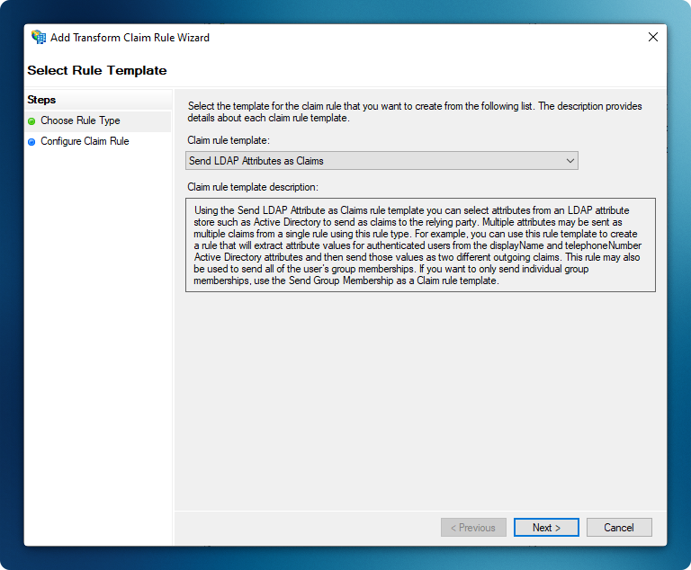 Section titled “Begin the configuration”Choose Microsoft AD FS as your identity provider